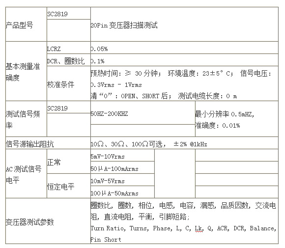 ■ SC2819是一款用于对各种电子变压器件进行检验的多功能变压器测试系统。采用5寸LCD显示器,使用户能更直观,更舒服的读出测试结果。它是一种高速度、高精度、高性能的变压器测试系统,可满足生产线质量保证、进货检验及实验室测量要求。